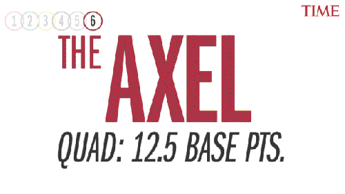 The Mount Olympus of figure-skating jumps, this one earns the most points because it takes off with the skater moving forward on an outside edge, and the forward glide is more challenging since it’s harder to shift the body weight immediately into the jump. This jump also involves an extra half rotation in the air since Malinin starts the jump gliding forward, then turns four and a half times in the air before landing backward on the opposite foot. Malinin is the only skater who has ever landed this jump in competition, which he first did in 2022.