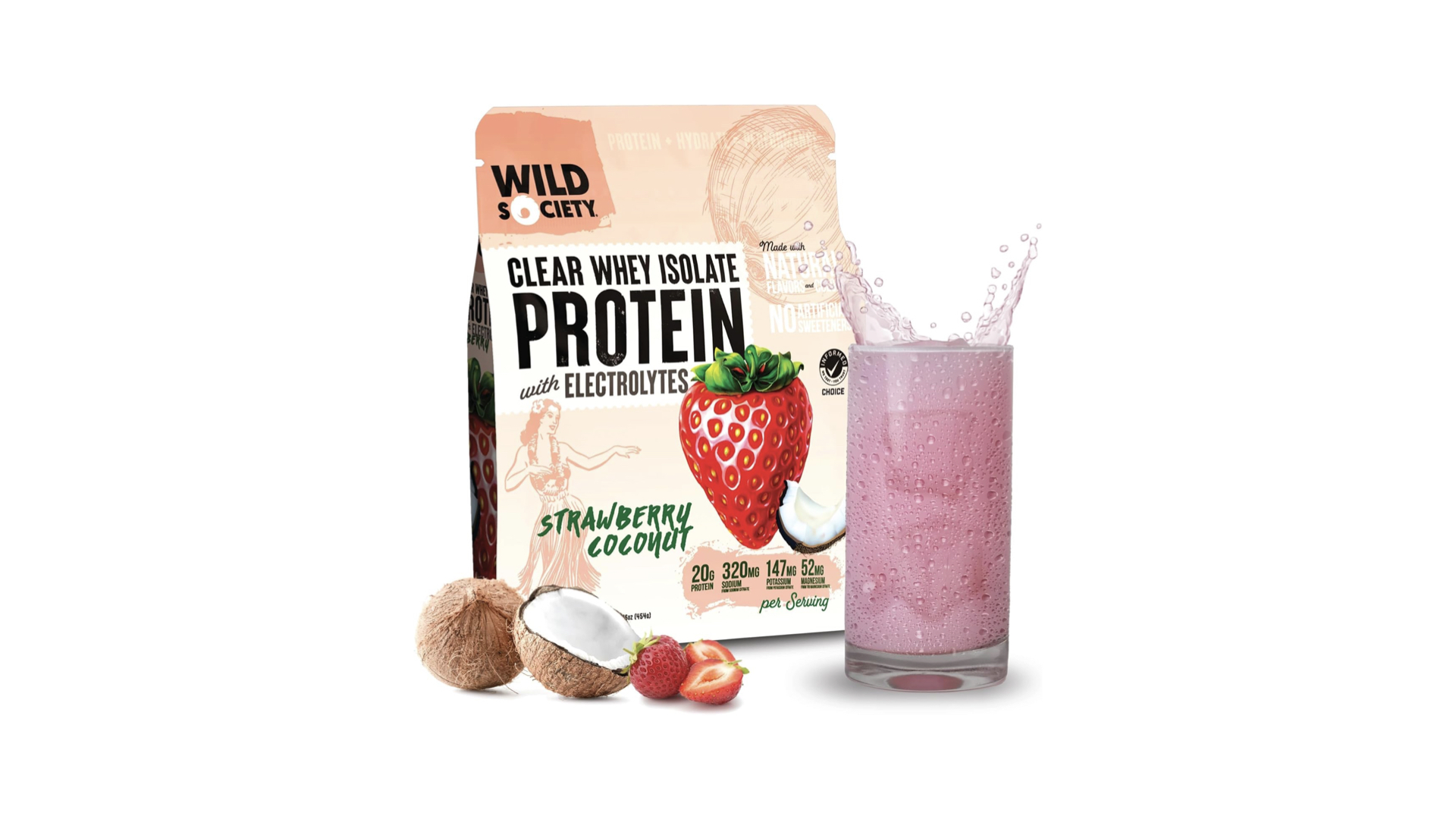 Wild Society Clear Whey Isolate ProteinThis clear protein powder is among the more affordable options, priced per serving. And it offers a decent protein-to-calorie ratio (4.5 calories per gram). The light and slightly creamy strawberry-coconut flavor is reminiscent of the Starbucks Pink Drink.See At Amazon$40
