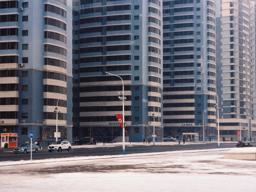 Through Kirill’s testimony, one might be tempted to think that life in North Korea is “getting better”: there are signs of increased automobile traffic, including many taxis, and QR codes—which I imagine are used for payments—appear on the windows of street kiosks. The murals adorning the rooftops around Kim Il Sung Square have been completely revamped, while new, modern skyscrapers have reshaped the skyline, though it’s still one veiled by smog from the Tsarist coal power plant that supposedly supplies the city with electricity.