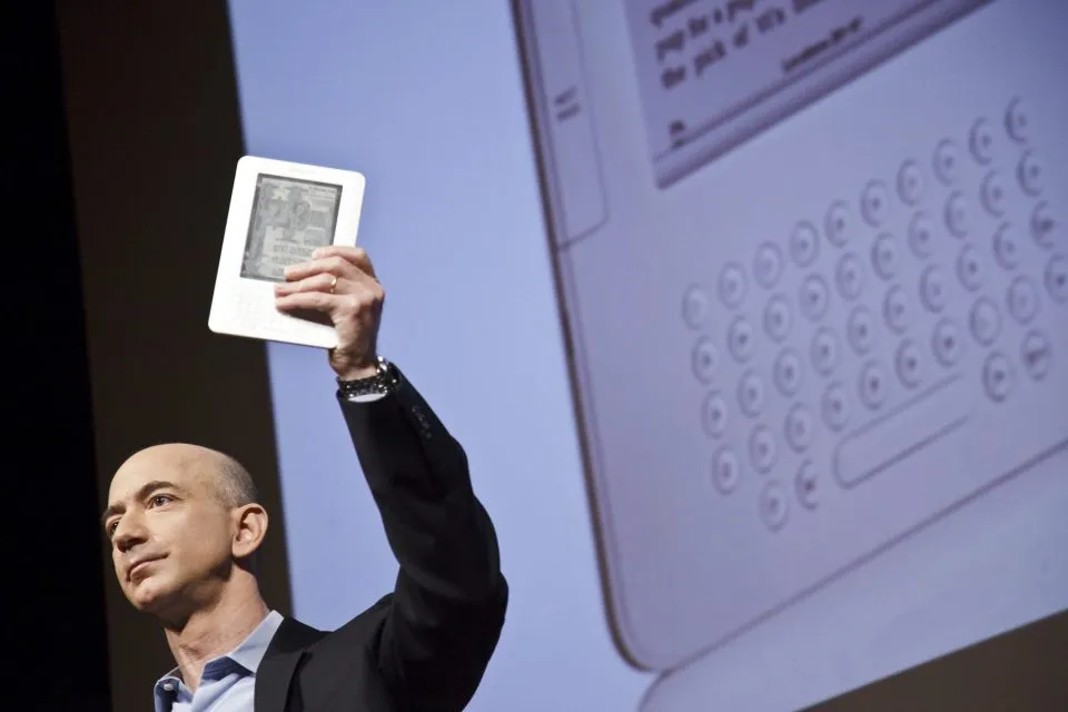 Bezos unveils the Kindle 2, the latest version of Amazon’s electronic book reader, in 2009. Amazon’s Kindle first launched two years earlier in 2007 as a way to make digital reading a more “appealing” and “comfortable” experience, according to Amazon.