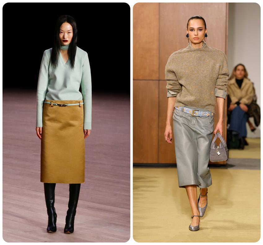 Tory Burch began showing similar midi-length skirts last season, and the fall versions in slick leather were even more luscious. She accessorized them with an encore of her spring ’26 braided belts that are already It items on Fashion Substack.