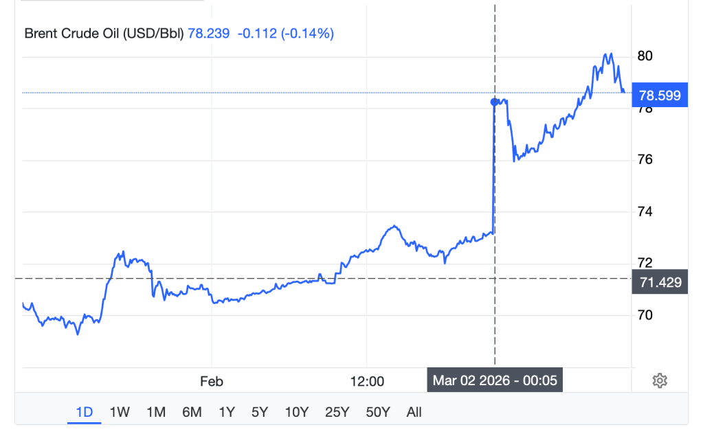 - Unsurprisingly, the price of oil rose sharply after the attack on Tehran begun, rising 13% at one point.