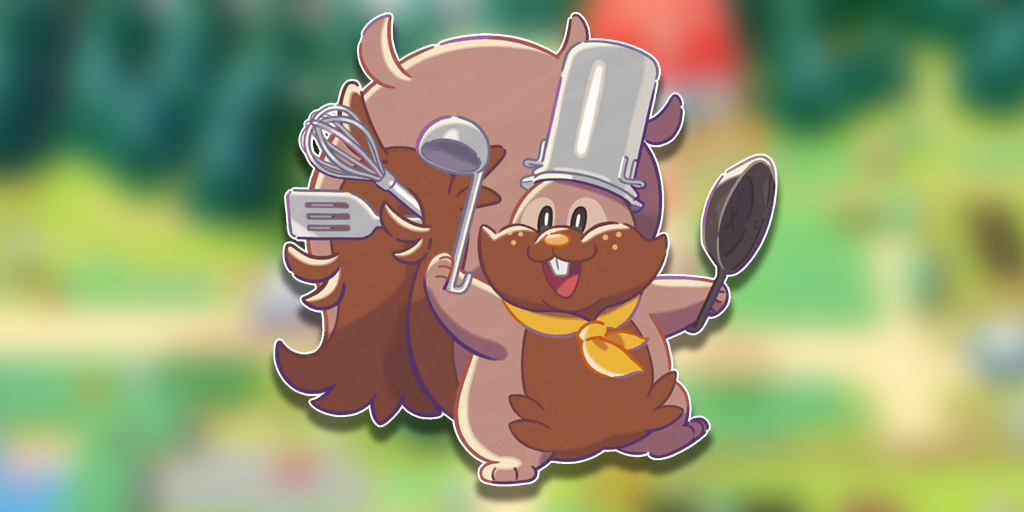 Chef Dente is a new Greedent variant in Pokemon Pokopia. This guy wears a yellow scarf and a chef’s hat made from a cooking pot. Of course, he’s also fully equipped with all of his little cooking tools sticking out of his tail. Just like a real Pokemon cook!