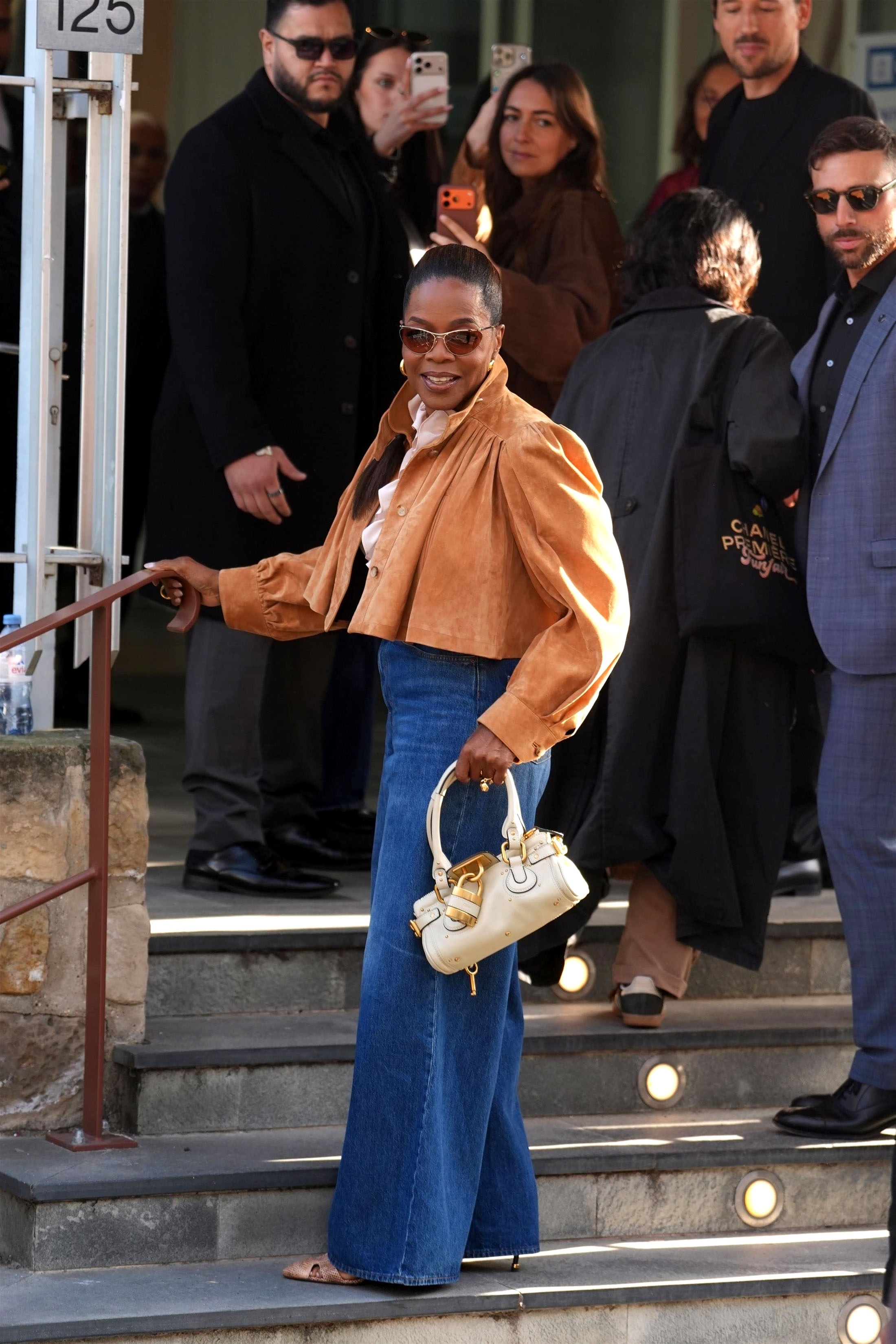 The 72-year-old media personality was spotted arriving at the Chloe runway show looking noticeably thinner in a pair of high-waisted jeans, a cream-colored top and a brown jacket.