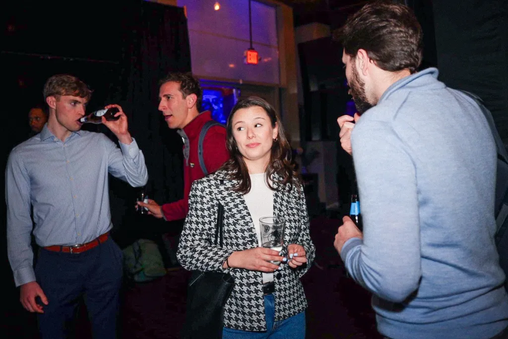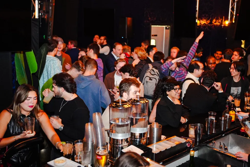 Possibly to apologize for the snafu—or, more likely, negate further bad press—Polymarket announced an open bar. Never able to reject free booze, I availed myself of their offer, and took a seat at the counter, from where I spent most of the night observing the scene.
