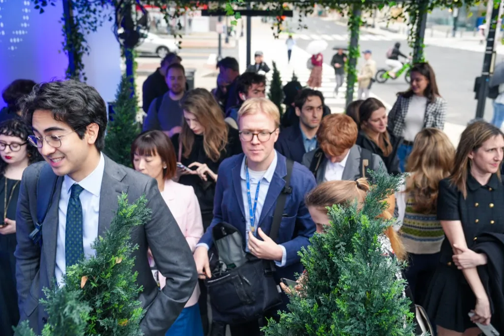 Eventually, Josh Tucker, Polymarket’s head of growth and the event’s official “emcee,” emerged from inside, and explained that they were having electrical issues, but to stay on standby. The crowd was half-amused, half-annoyed, swelling with glee that they’d get to report on this fuck-up, but also keen to avoid getting wet. As time passed, suppressed scorn gave way to visible schadenfreude, and some journos began to bet, presumably but not verifiably non-monetarily, on when, if it all, we’d be let inside.