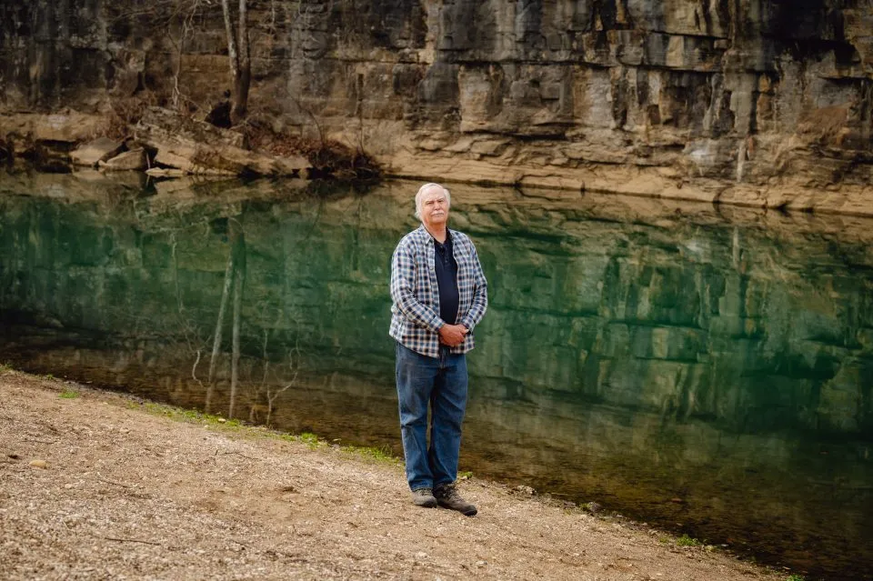 One afternoon, in Jasper, Gordon Watkins, who runs the Buffalo River Watershed Alliance, pointed to the limestone bluffs along the Buffalo National River. This landscape is the quintessential Ozarks, with rolling hills and karst topography that forms caves, sinkholes, and springs in the bedrock.
