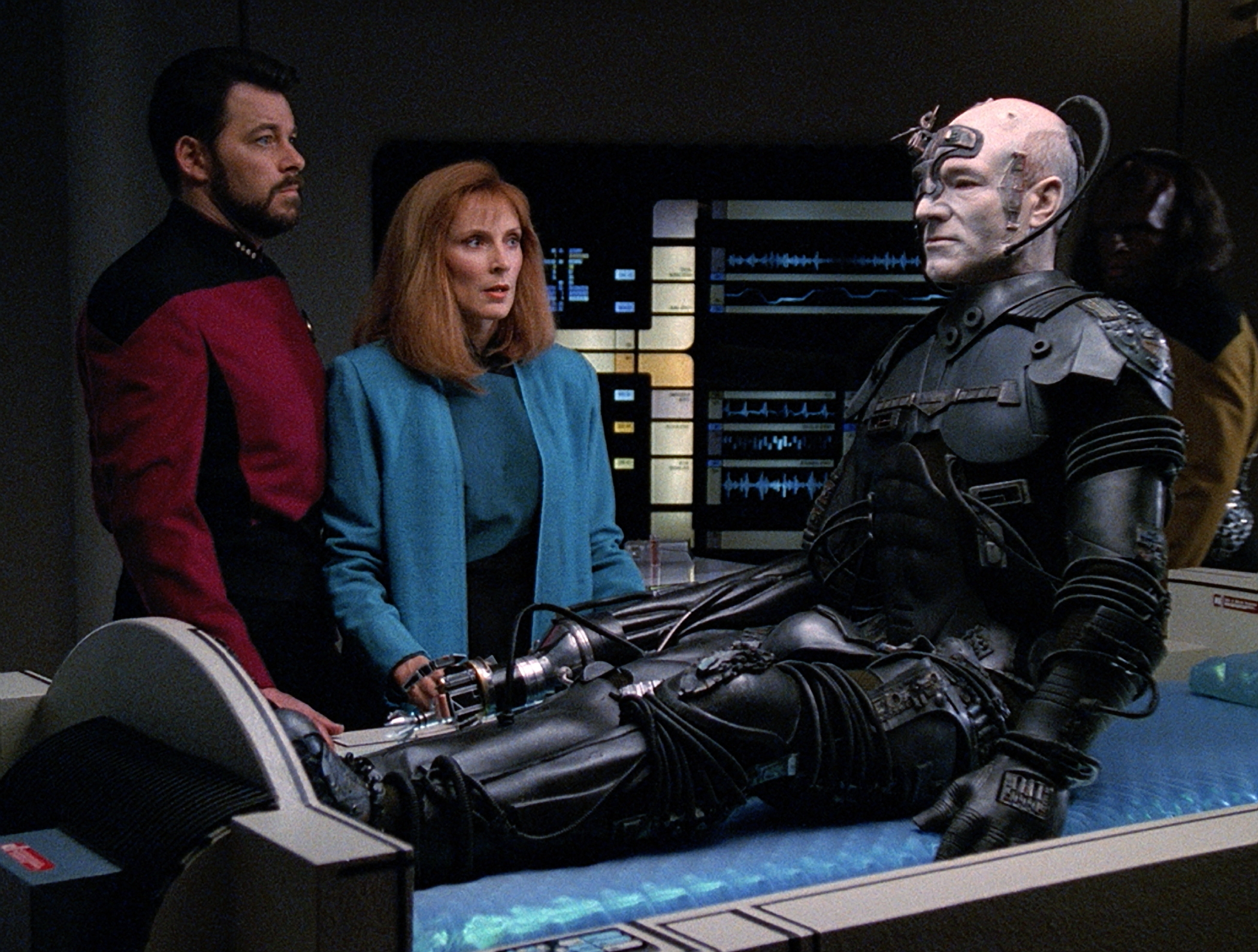 On the bridge of the U.S.S. Enterprise, Commander William Riker stares into the face of his captain and sees a future worse than death. Jean-Luc Picard—principled diplomat, conscience of the Federation—stands on the viewscreen, stripped of everything that made him human. His ashen skin is snaked with circuitry, his voice flattened into the cold register of the Borg, a cybernetic collective that assimilates entire civilizations and reshapes them in its own image. In that moment, it wasn’t just a captain taken; it was the Federation’s belief in itself.