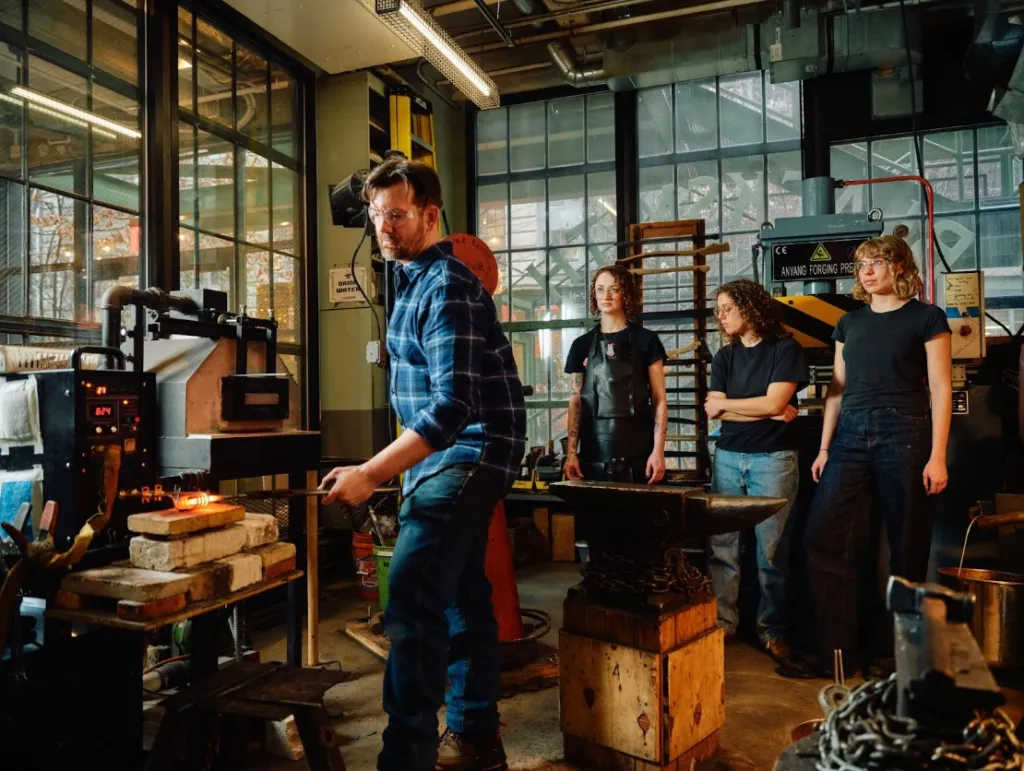 Bladesmithing instructor Justin Kirck started forging as a 14-year-old in his backyard, trying to make a sword in a makeshift charcoal forge. Then he worked his way up from shop boy to part-owner at Nazz Forge in Brooklyn, finding his calling at the furnace with fire and steel.