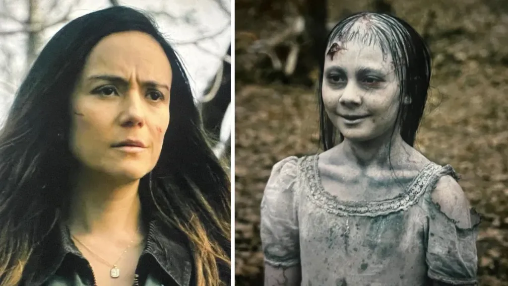 After Tabitha tells Jim that she and Jade have been in the town since the beginning (as different people) and tried to save the children in white, she asks Jim to give her “some time” and walks off into the forest in tears. A flashback of the Matthews family riding in their van before running into the tree plays, and then it cuts back to the present time. As Jim processes what his wife just told him, Julie comes running over, shouting for her father. But it’s not just any Julie, it looks as if it’s her from the future, sporting a shoulder-length bob and different clothes. She’s also got cuts on her face, showing that she’s been in some sort of tussle. She then tells Jim that he needs to run back to town, that she thinks “this is when it happens” and that she’s trying to change the “story.”