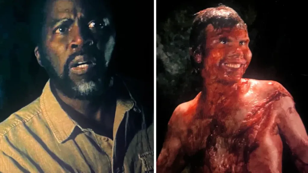 As that’s all happening, the floor door Fatima was trying to open rises on its own. The Kimono Woman then carries the offspring beneath the floor and into the cave where the night people live. By this point, Boyd and Ellis have finally come to Fatima’s rescue. In an effort to discover the Kimono Woman’s plans, Boyd follows, where he sees all the people of the night circling one another. After the Kimono Woman places the organism on the ground, it begins growing bigger, taking the form of a human-like being. The being breaks out of its fleshy sac, revealing Smiley reborn.