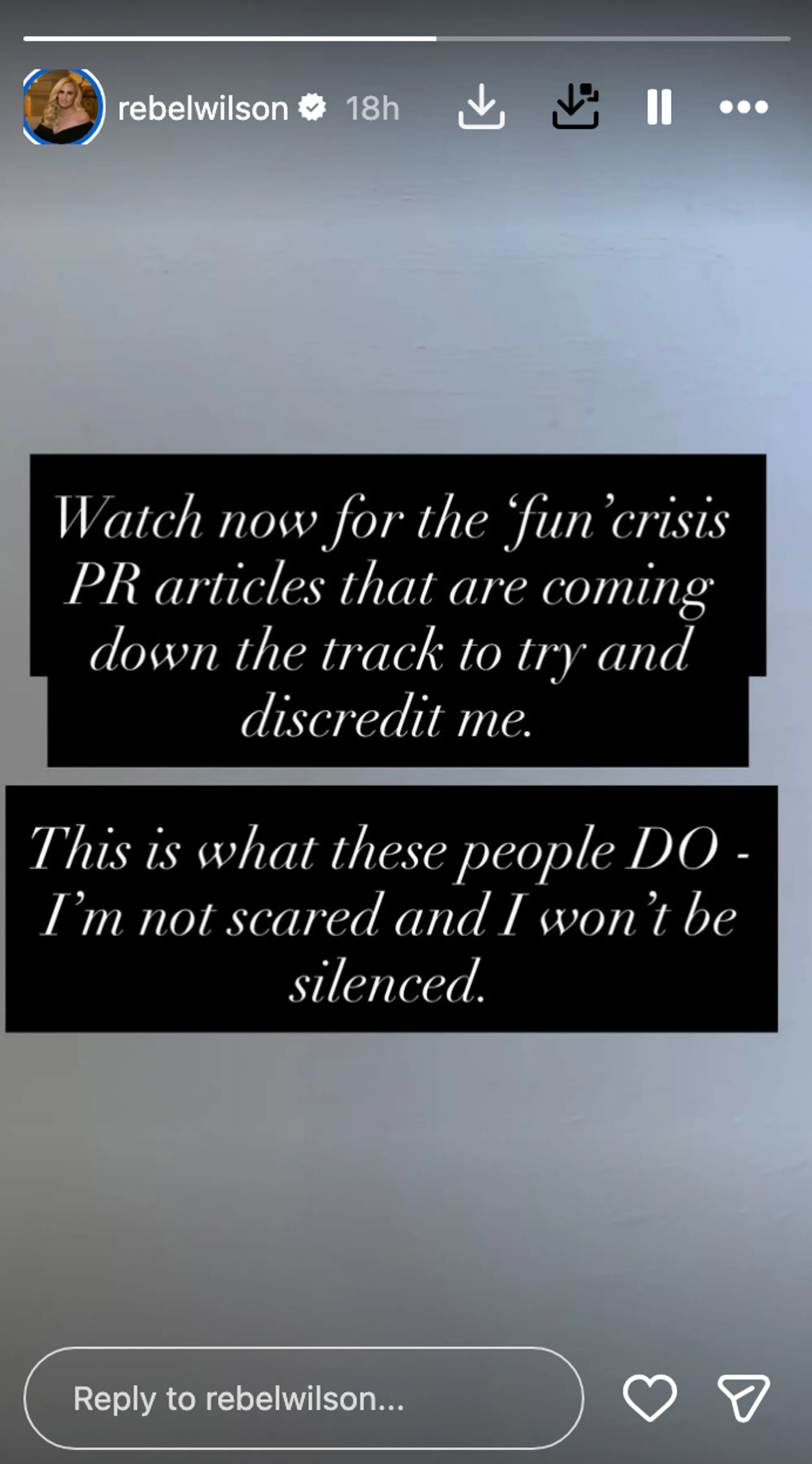 MacInnes claimed Wilson made defamatory posts on Instagram (as seen above). Instagram/@rebelwilson