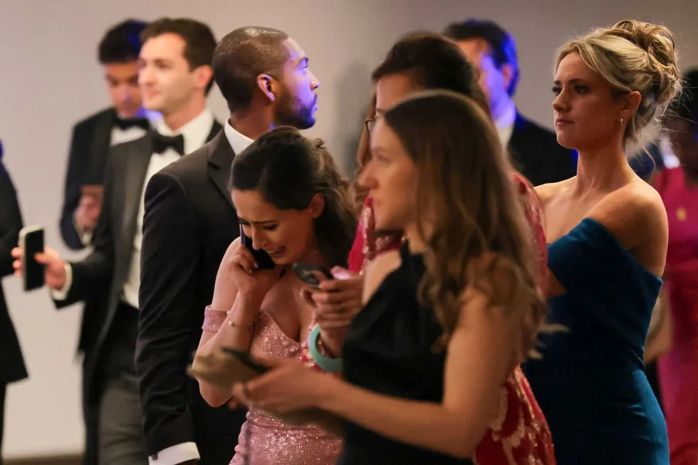 A guest makes a phone call following a shooting incident during the annual White House Correspondents’ Association dinner.